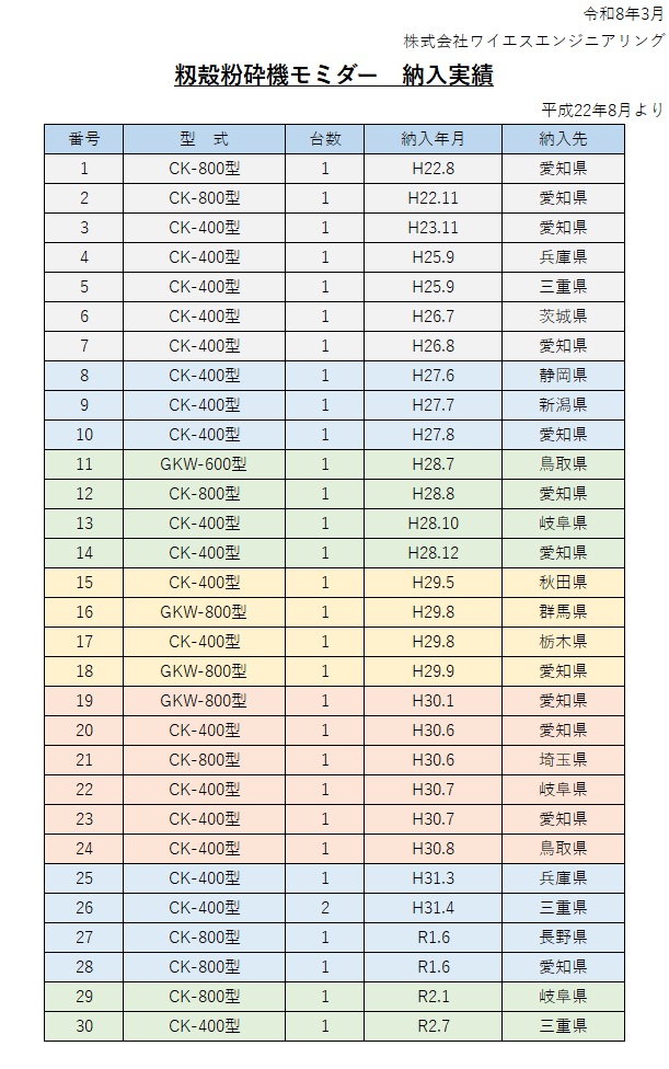 籾殻粉砕機モミダーの導入実績のご紹介です